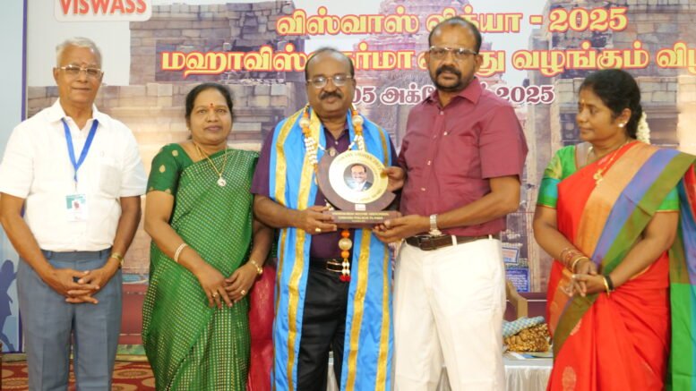 விஸ்வாஸ் வித்யா 2025 மஹாவிஸ்வகர்மா விருது சௌ மா கல்வி நிறுவனங்களின் தலைவர் சௌமா ராஜரத்தினம் அவர்களுக்கு வழங்கப்பட்டது